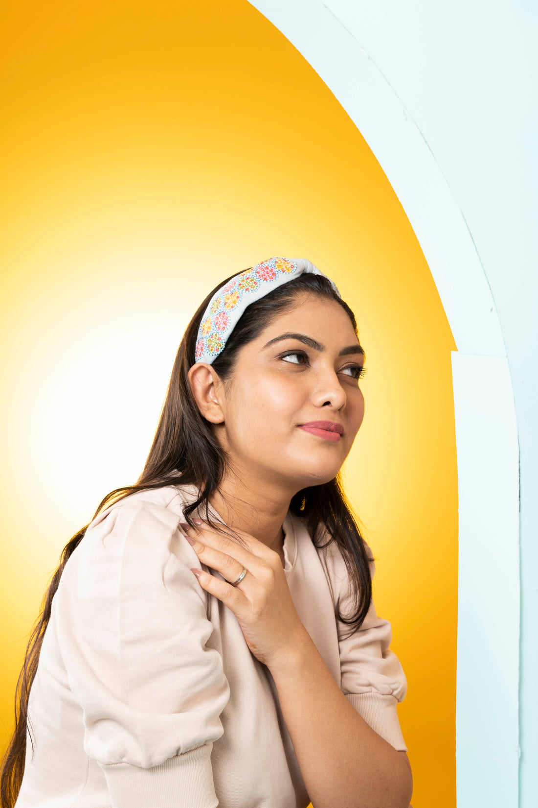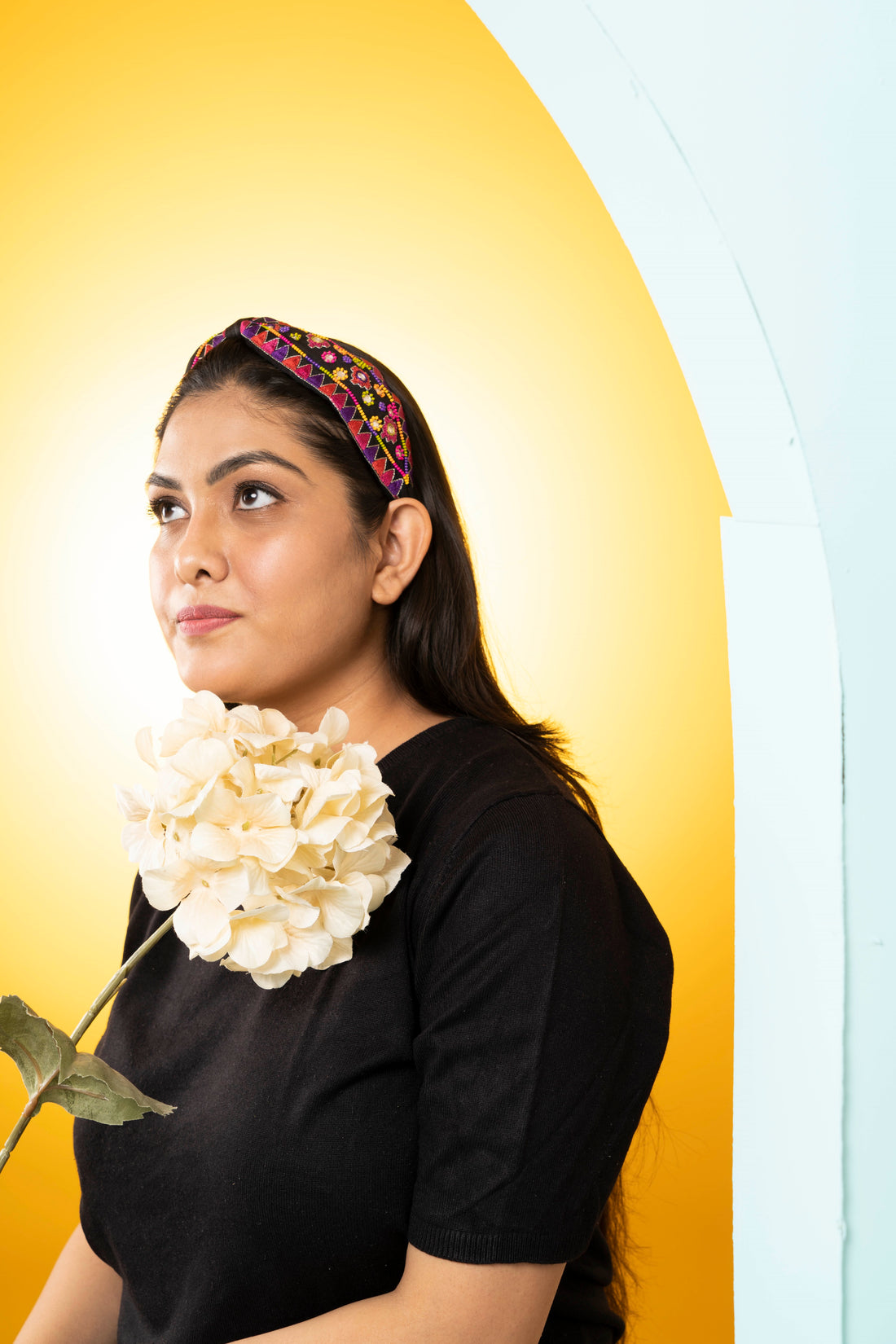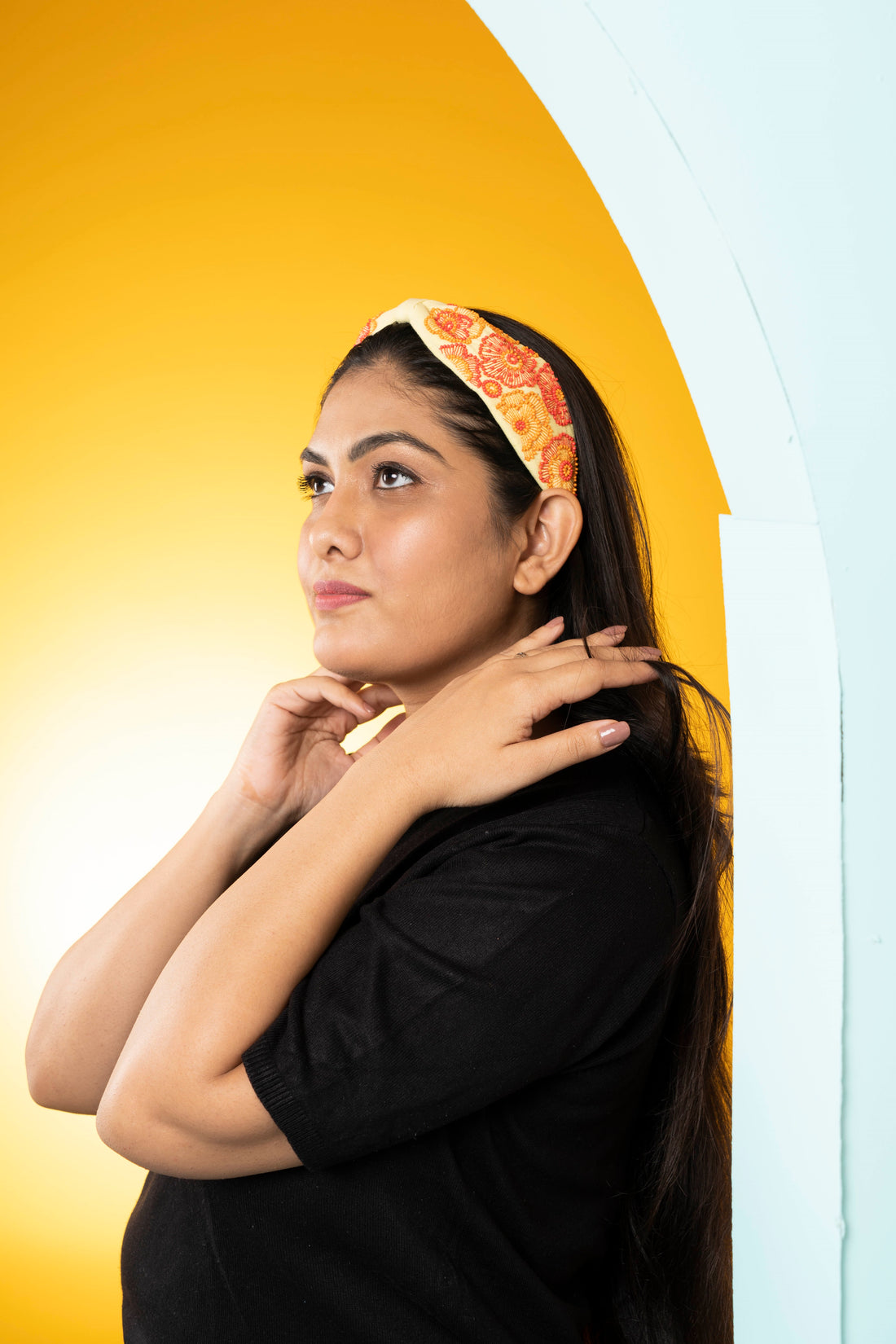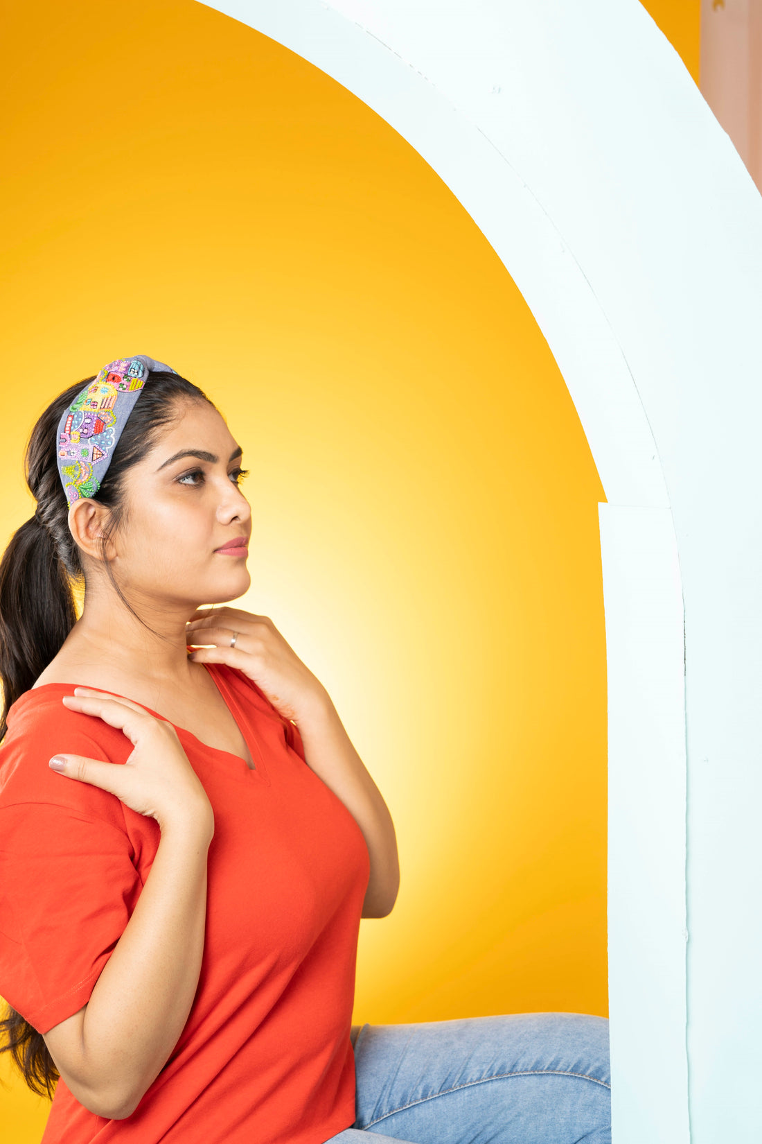 A vibrant India with a modern narration. This headband is a work of art depicting...