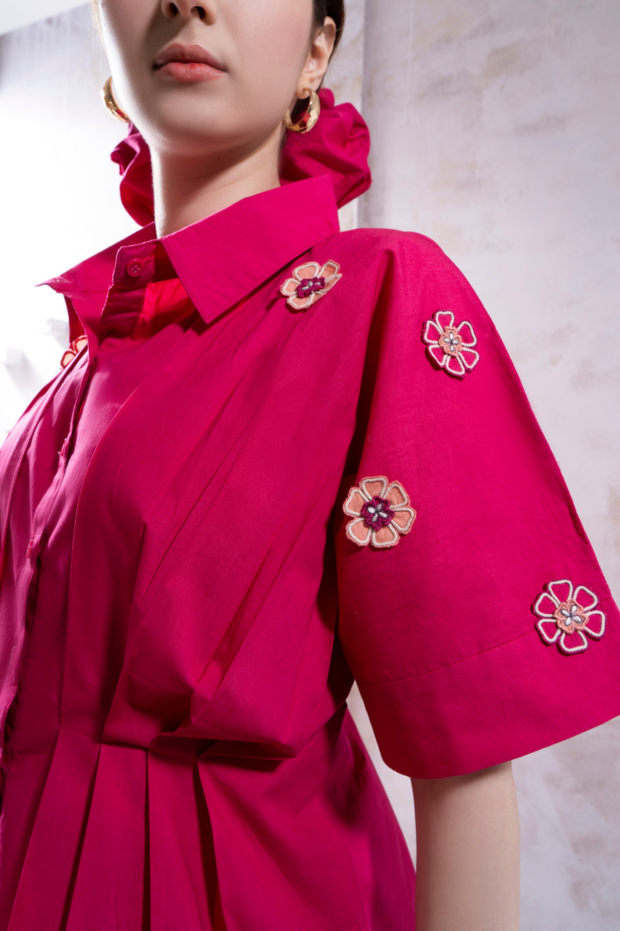Crafted from high-quality organic poplin in a stunning magenta pink, this top features a sophisticated...