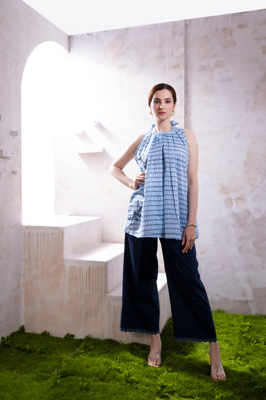 Imara Top & Ruya (Navy Blue) Flared Pant Co-ord Set
