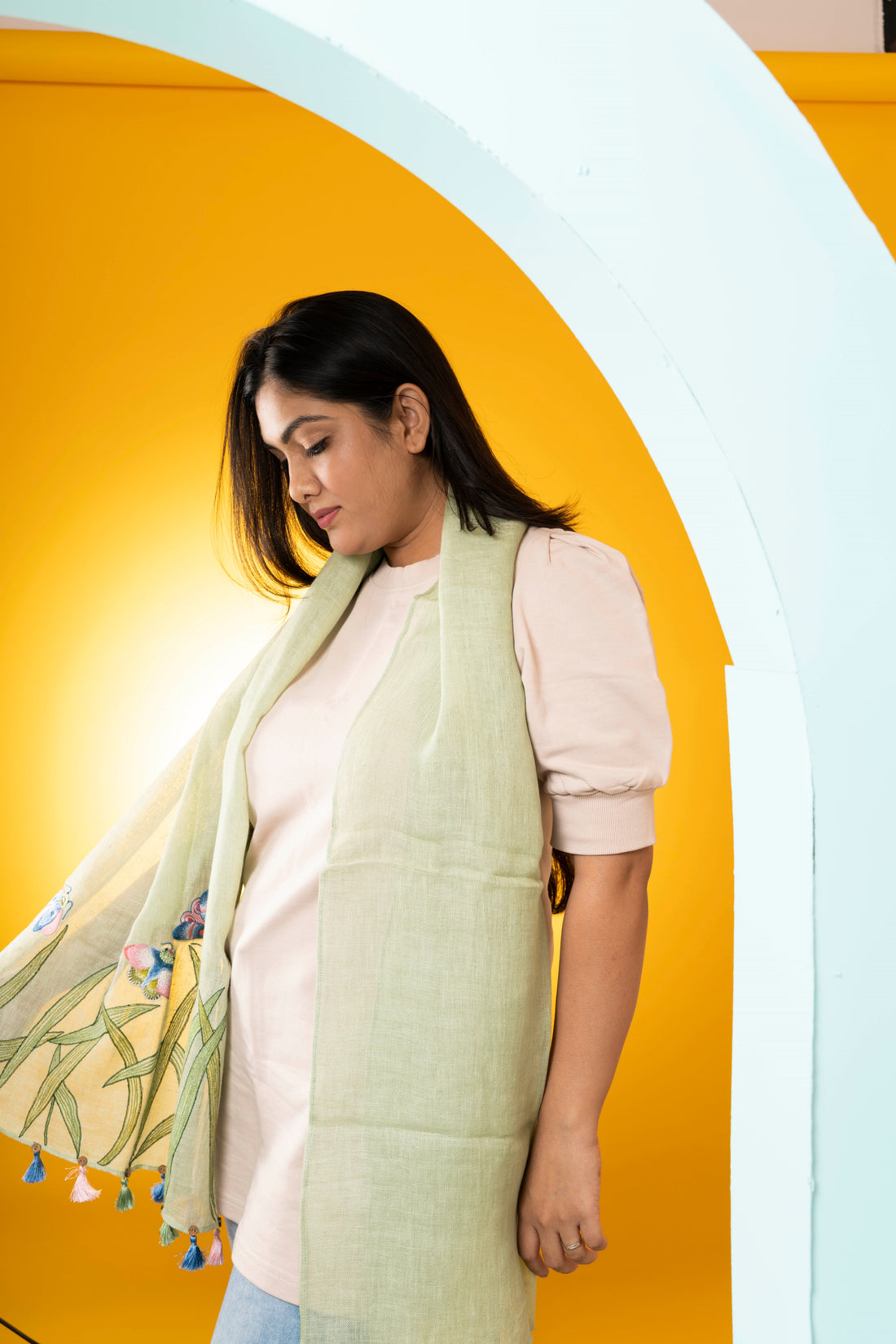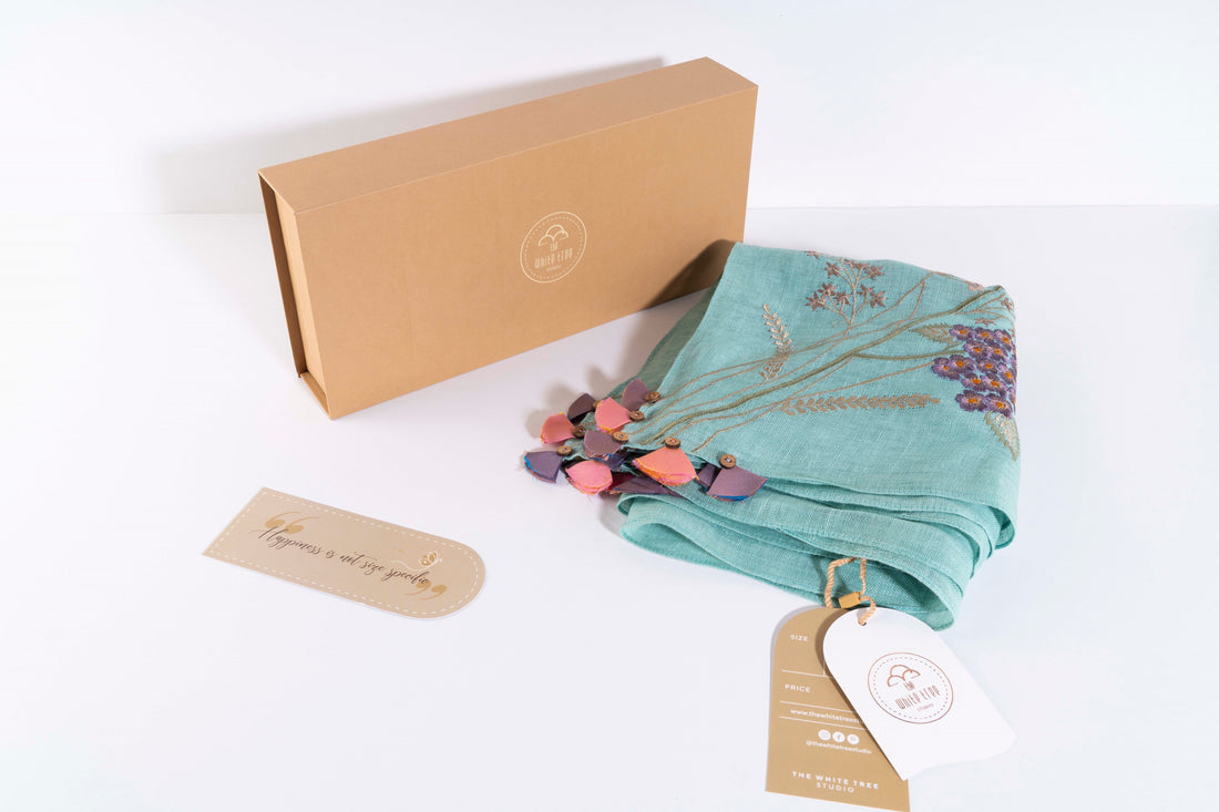 This stole is what summer dreams are made of. Navy blue linen base with beautiful...