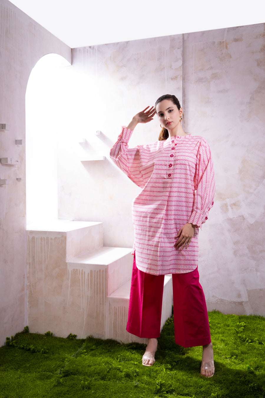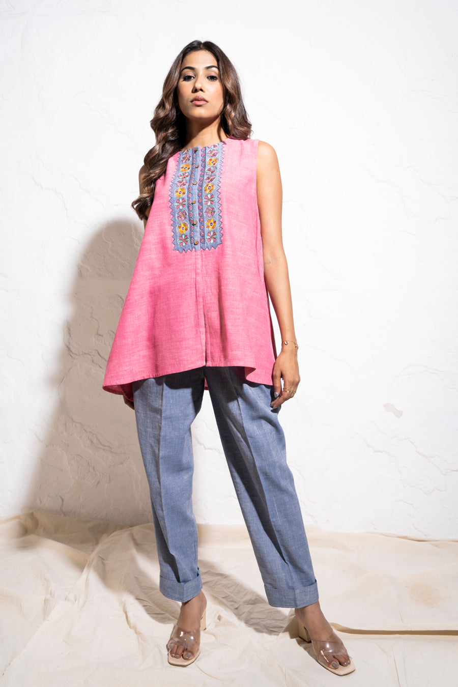 Embroidered Yoke Handwoven Cotton Berry Pink Top